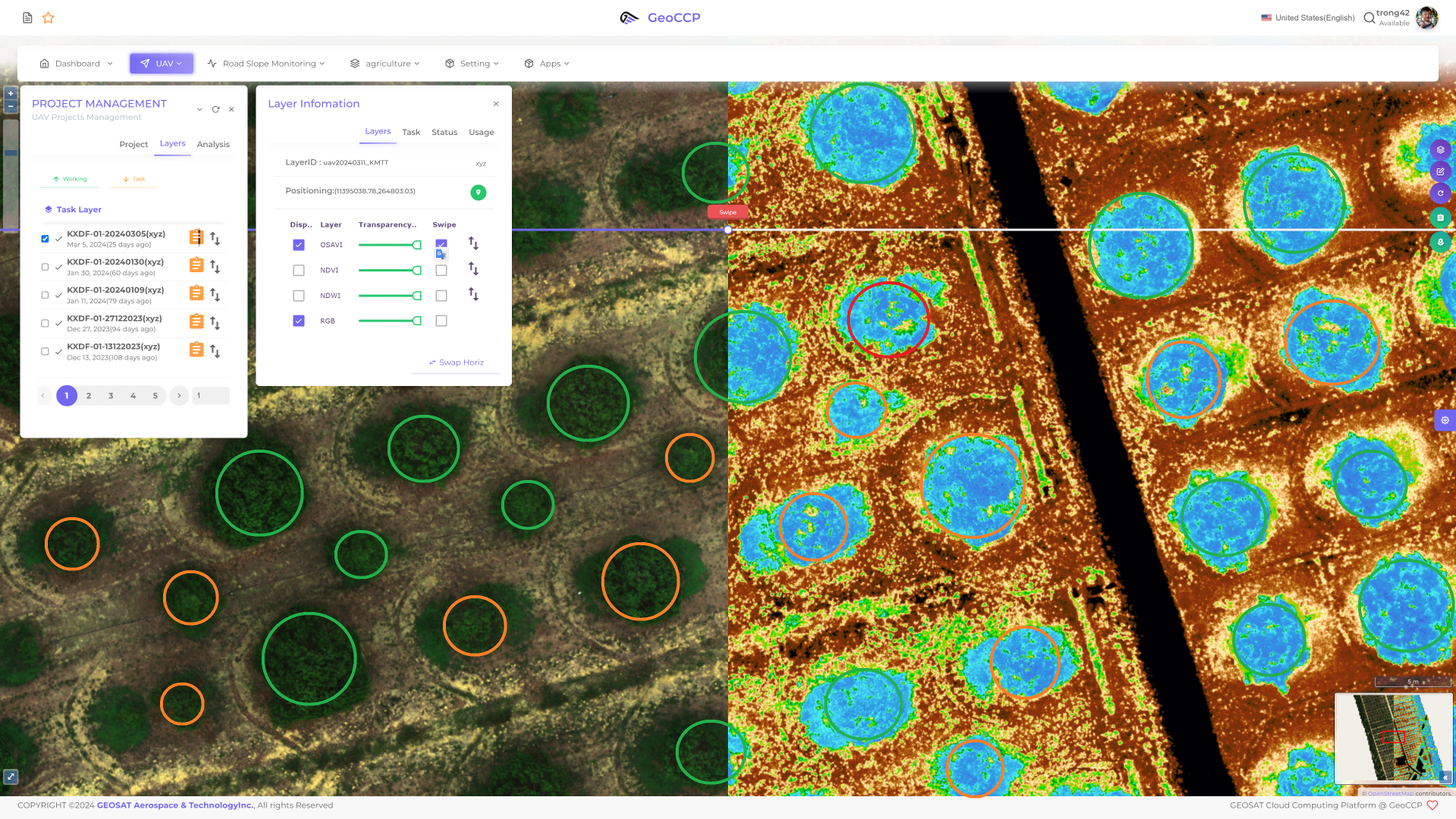 geoccp雲端智慧農業分析平台為經緯航太自行開發之網頁式無人機影像與分析成果展示平台。