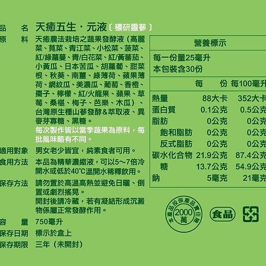 為了讓天癒五生‧元液更加健康無負擔,我們採用低gi/glycemic index的異麥芽寡糖/isomalto-oligo。異麥芽寡糖幾乎不被人體所分解使用,升糖指數低、熱量低。食用後有助腸道內「雙叉桿菌群」(bifidobacterium spp.)增殖,協助產生維生素b1、b6、b12、菸鹼酸,以補充日常食物中攝取之不足,對維持消化道機能有很大的幫助。