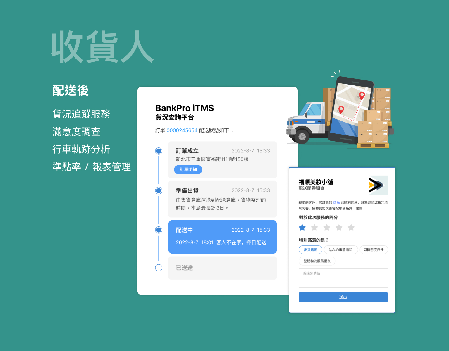 金財通i-tms智慧配送管理,六大產品特色,聚焦物流最後一哩路配送,大幅減少人力與提升路線行進效率!