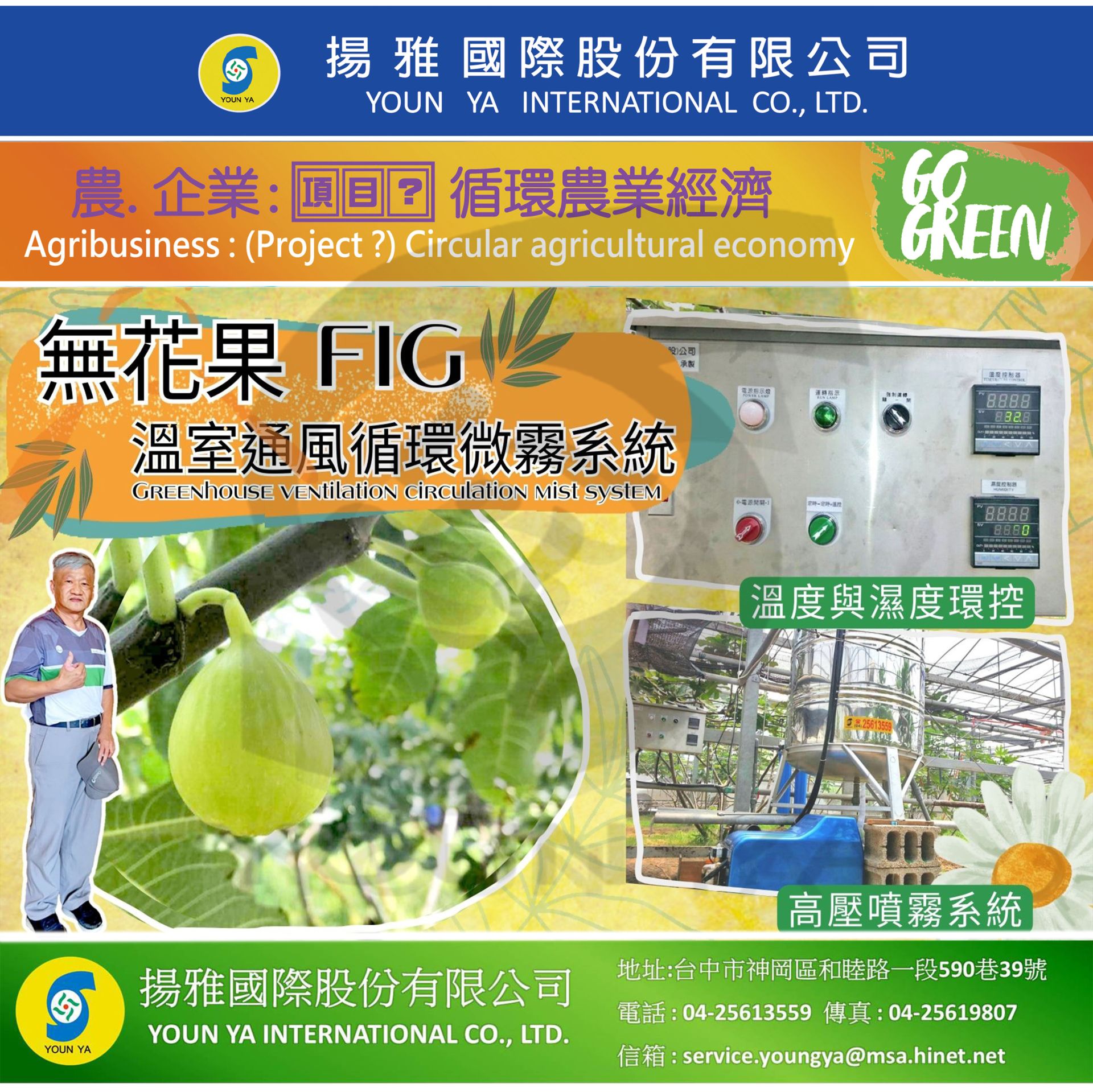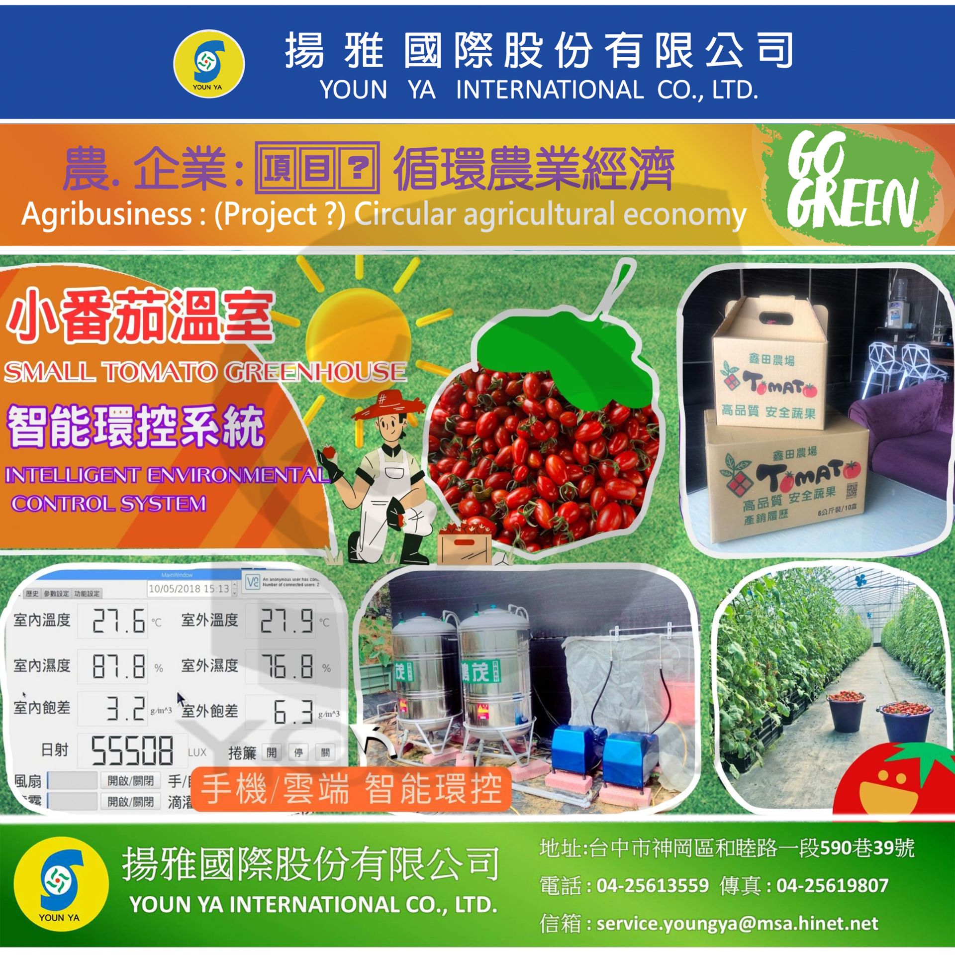 針對溫網室的環控設計,智能監控,收集數據,進行產季調節,天天都有新鮮水果可以選擇,不再受季節影響! 並配合正負壓循環風扇、微霧降溫等系統,在區間內更進一步調節溫濕度,達到植物適合之生長環境及條件,更利於鮮果/鮮花照顧與生產。