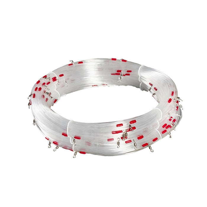 尼龍單絲轉環繩可生產尺寸為線徑1.2mm至3.0mm,轉環型式、間距、整組長度均可按漁民需求客制而成。歡迎與我們聯繫您的需求,我們將為您量身訂制解決方案。