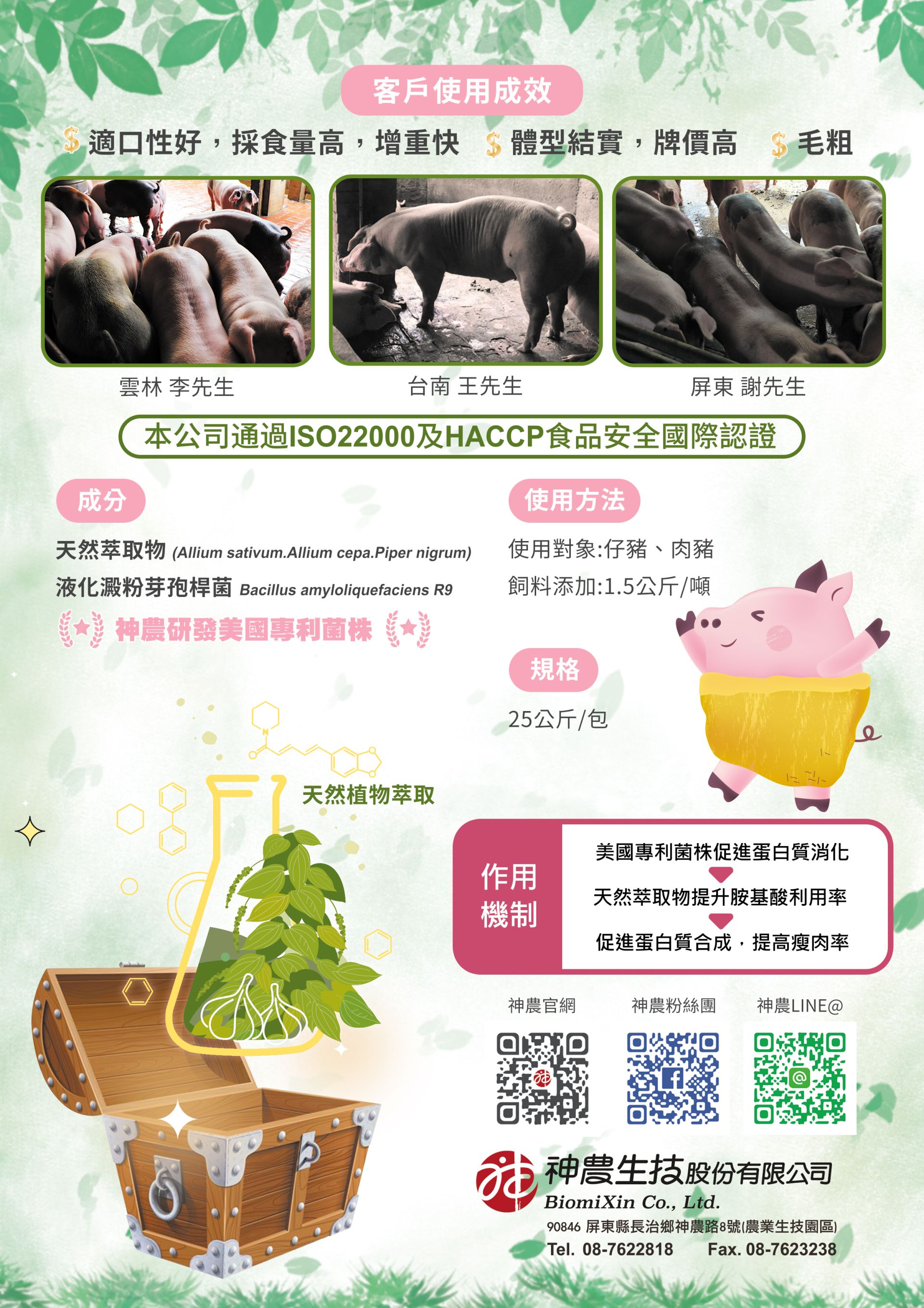 ②natural extracts: improving the utilization of amino acids, further promoting protein synthesis and increasing lean meat content.